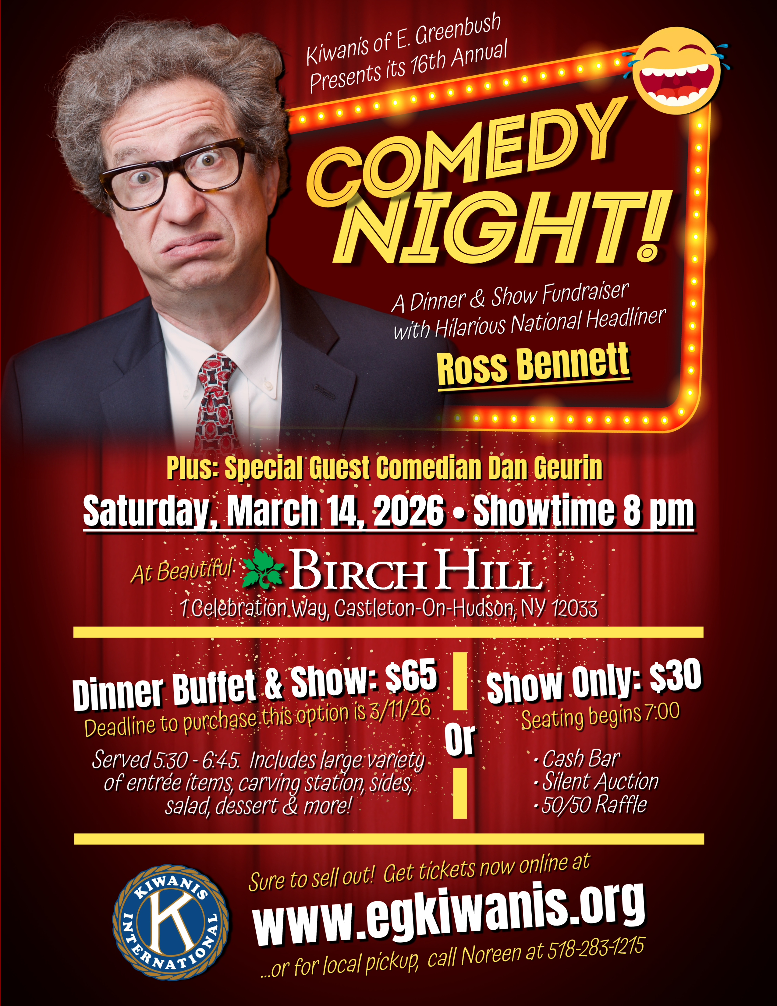 The Kiwanis Club of East Greenbush proudly presents our 16th Annual Comedy Night Fundraiser.